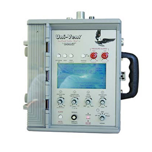 El Impact Univent Eagle 754 es completamente autónomo y no requiere gas externo. Con compresor y mezclador internos, ofrece modos de ventilación PEEP con asistencia controlada, SIMV, CPAP intubada y CMV (para respaldo de apnea). La pantalla LCD gráfica y brillante proporciona ajustes de monitorización y alarma. Un modo interactivo de demostración/enseñanza asegura una secuencia rápida de puesta en marcha en tan sólo tres pasos. Certificado por EMI/RFI y Air Medical. Disponibilidad limitada. A diferencia de cualquier cosa que haya visto antes, el Eagle es una maravilla de la ingeniería que se suma a la lista de logros de Uni-Vent. Imagine un ventilador-compresor-mezclador autónomo que pesa poco más de 12 libras, con pantalla gráfica, potentes monitores y alarmas, un modo de demostración/enseñanza interactivo y una secuencia de inicio rápida que le permite comenzar a funcionar en tan sólo 3 pasos.