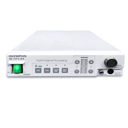 Circon soakable solid-state color MicroVideo camera power on/off pulsador con indicador luminoso verde parte trasera de la unidad tiene conectores para generador de caracteres y entrada y salida de video cable de alimentación de 7 pies con enchufe de grado hospitalario.